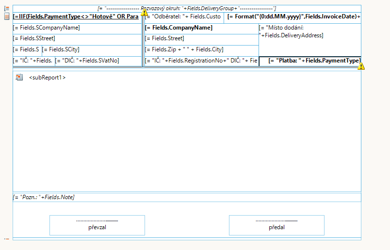 I have report for Delivery list printing. My master report has dataset with delivery list headers (one record per one delivery list) and then I have subreport for detail (product items, quantities and totals).