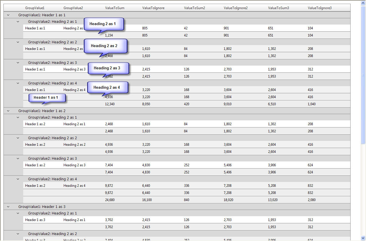 I have a masterdetail grid with two group by expressions to group the data at 2 levels. All works well. However in the footer text of the row, I would like the value of the group by expression to be shown.