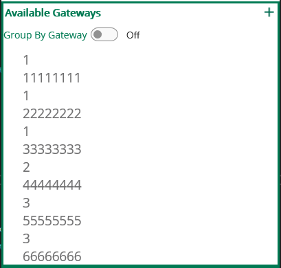 When the Group By Gateway switch is on the list is grouped as shown above. When the switch is off it shows the list without the group headers as shown below....