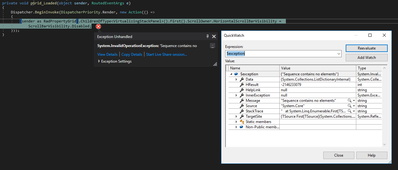 (sender as RadPropertyGrid).ChildrenOfType<VirtualizingStackPanel>().First().ScrollOwner.HorizontalScrollBarVisibility = ScrollBarVisibility.Disabled;
