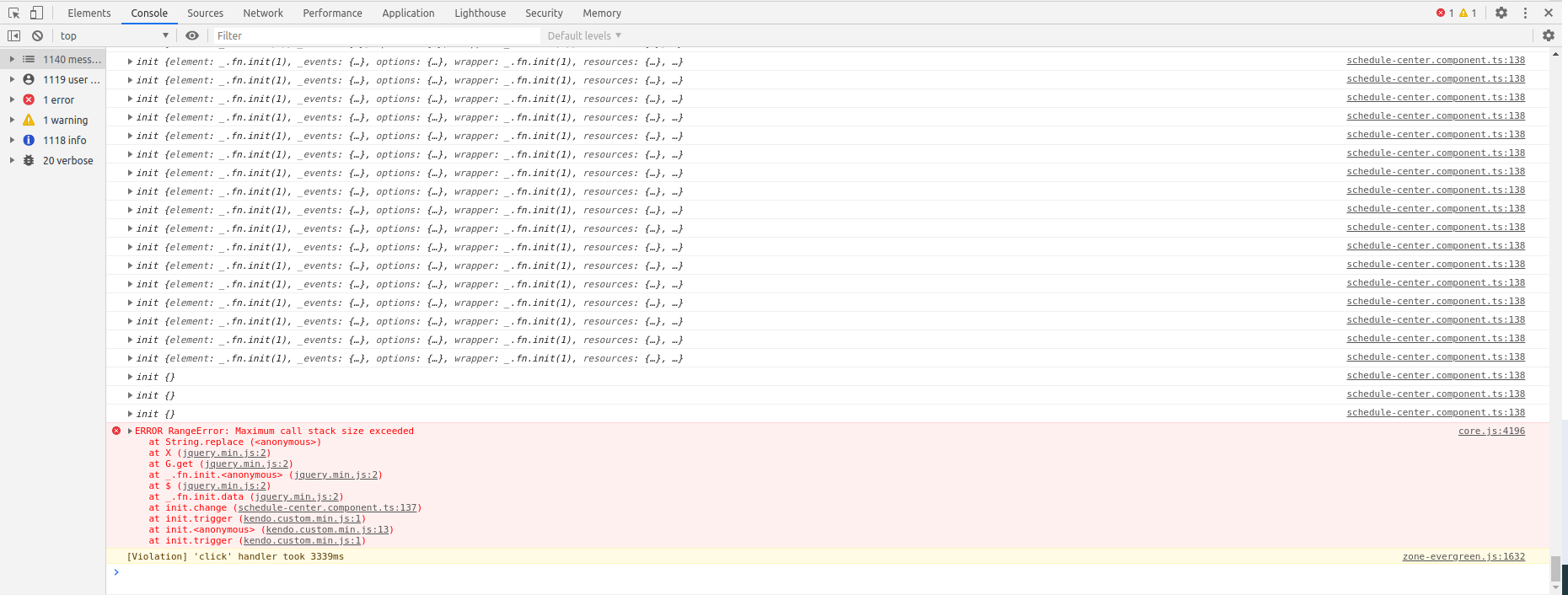 "maximum call stack size exceeded" error occur. why?