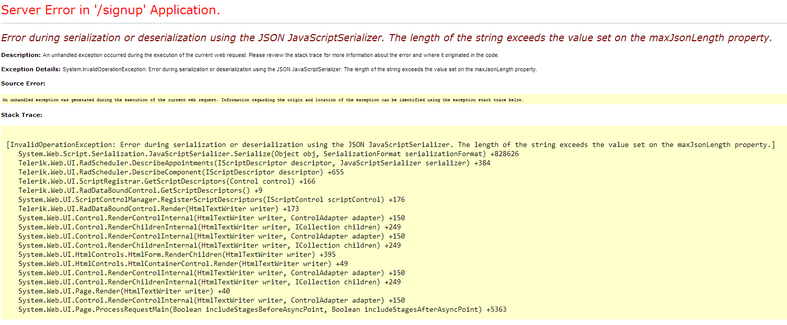 My web.config file has maxJsonLength set to max - 2147483644.