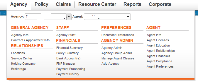 At the top of our menu, the user can select from a list of agencies and agents. I've attached a screen shot of how it looks in our scenario.