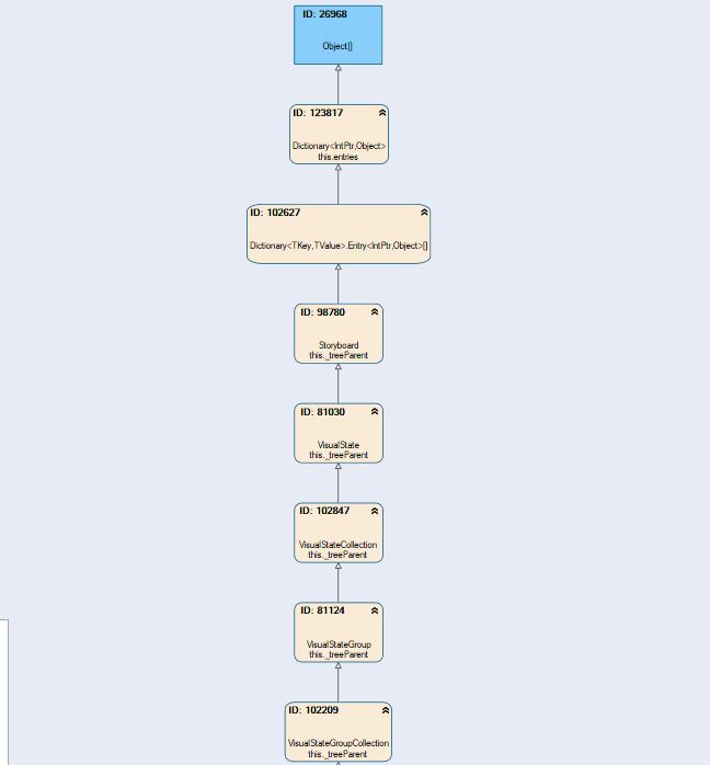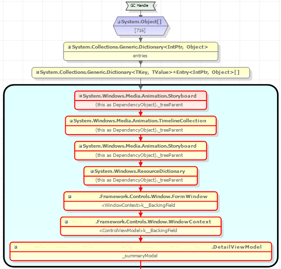 - Running JustTrace showed that Dictionary<intPrt,Object> was holding the viewmodel (see attached)