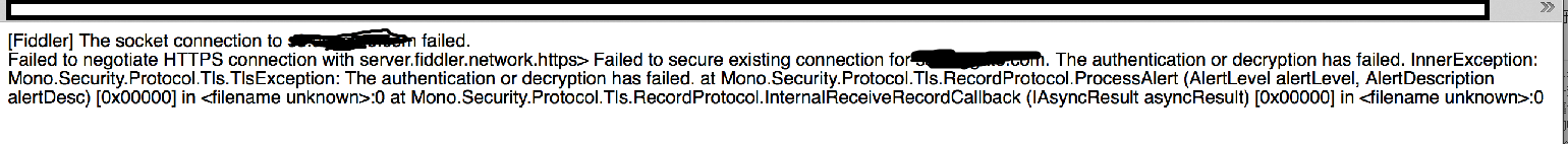 at Fiddler.ClientChatter.FailSession(Int32 iError, String sErrorStatusText, String sErrorBody)