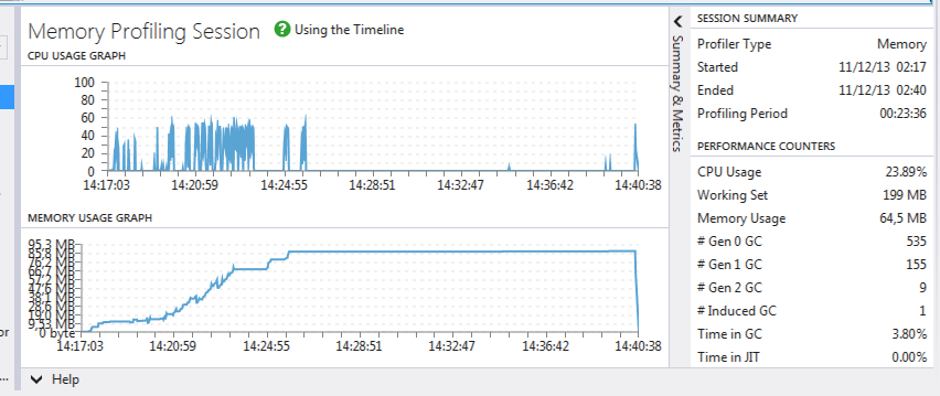The long standstill situation of the memory at the higher value is basically no-activity on the website showing a page with the last report opened. As you can see the memory never gets released.