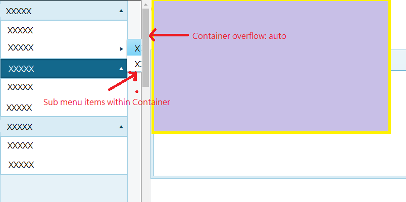 I have found the sub menu items will be hidden behind the container while Menu was placed within PanelBar(overflow: auto).