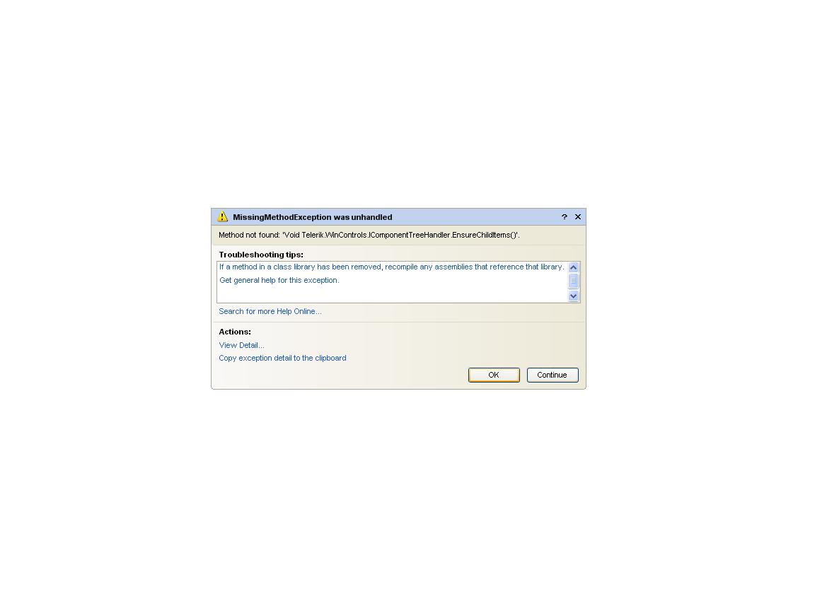 In the new TPF version we removed the EnsureChildItems() method. So, you need to recompile your application with the new Telerik assemblies removing the EnsureChildItems call from your code.
