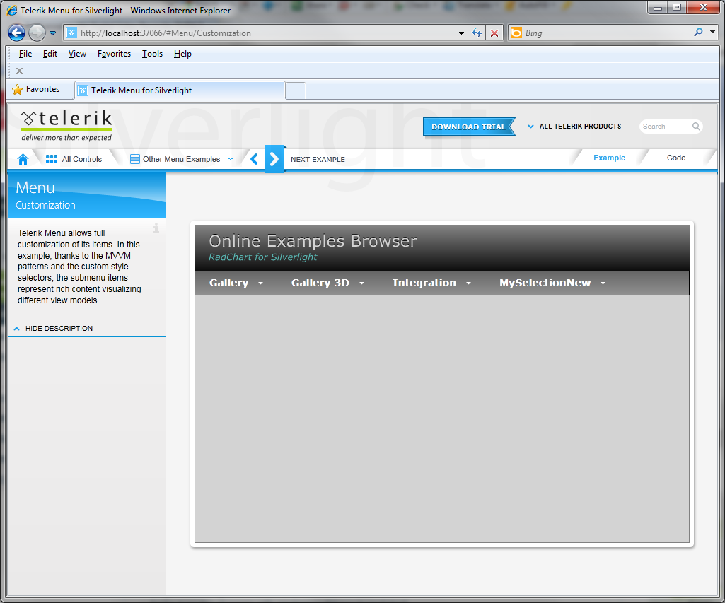 Here attached i have sent you screenshots of the MenuCustomization example in 2010 Q3 issue and 2011 Q1.