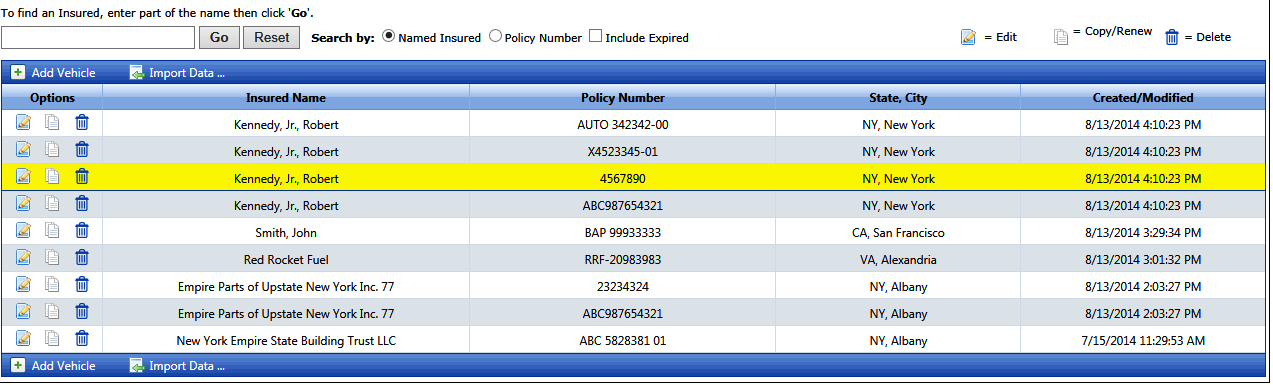 To answer your question about auto-merge, I am not sure that would be best for us, as we would like to have an "action/options" cell to the left of the Insured/Policyholder name that would allow us to edit, copy, and delete. Currently there are as many of these action/option icons as there are rows.