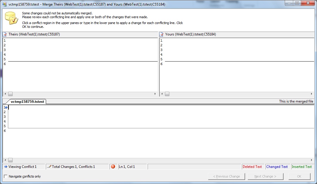 I am having an issue where I have made changes to a test that requires me to get latest. The Merge Reviewer will display the code lines, but they are blank
