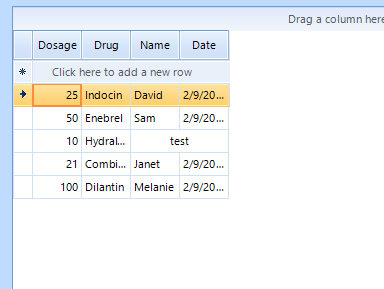 class MyGridRowElement : GridDataRowElement{ LightVisualElement mycell = new LightVisualElement(); protected override void CreateChildElements() { base.CreateChildElements(); mycell.DrawText = true; mycell.Text = "test"; mycell.DrawFill = true; mycell.BackColor = Color.White; mycell.GradientStyle = Telerik.WinControls.GradientStyles.Solid; mycell.DrawBorder = true; mycell.BorderBoxStyle = Telerik.WinControls.BorderBoxStyle.FourBorders; mycell.BorderLeftColor = Color.FromArgb(209, 225, 245); mycell.BorderTopColor = Color.FromArgb(209, 225, 245); mycell.BorderBottomColor = Color.FromArgb(209, 225, 245); mycell.BorderRightWidth = 0; this.Children.Add(mycell); } public override GridCellElement CreateCell(GridViewColumn column) { var cell = base.CreateCell(column); if (column.Index >=2) { cell.Visibility = Telerik.WinControls.ElementVisibility.Hidden; } return cell; } public override bool IsCompatible(GridViewRowInfo data, object context) { return false; } protected override Type ThemeEffectiveType { get { return typeof(GridDataRowElement); } } protected override SizeF ArrangeOverride(SizeF finalSize) { var result = base.ArrangeOverride(finalSize); var X = this.VisualCells[3].ControlBoundingRectangle.X; var width = this.VisualCells[3].ControlBoundingRectangle.Width + this.VisualCells[4].ControlBoundingRectangle.Width; mycell.Arrange(new RectangleF(X, 0, width-2, finalSize.Height)); return result; }}You can use the CreateRow event to change the default row: