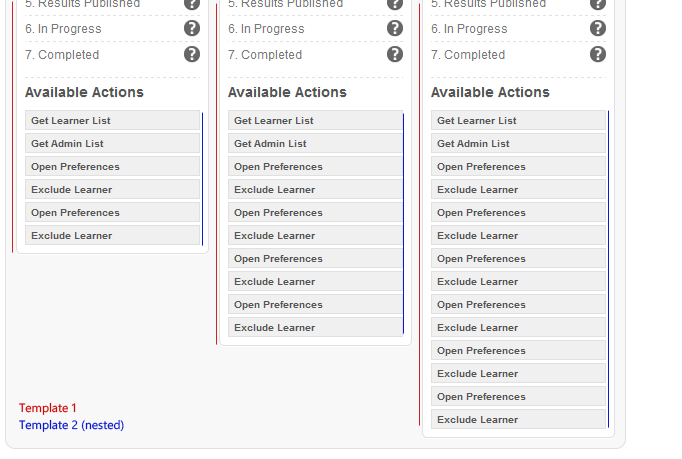 <script id="campus-template" type="text/x-kendo-template"> <div class="campus-phase-block" data-bind="attr: {data-campusid: CampusID}"> <h3 data-bind="text: Campus"></h3> <ul data-template="phase-template" data-bind="source: PhaseData" class="phaseBlocks"> </ul> <div class="verbs"> <h3>Available Actions</h3> <ul data-template="verb-template" data-bind="source: getVerbs" class="dynamic-list"> </ul> </div> </div></script>..and here's template 2: