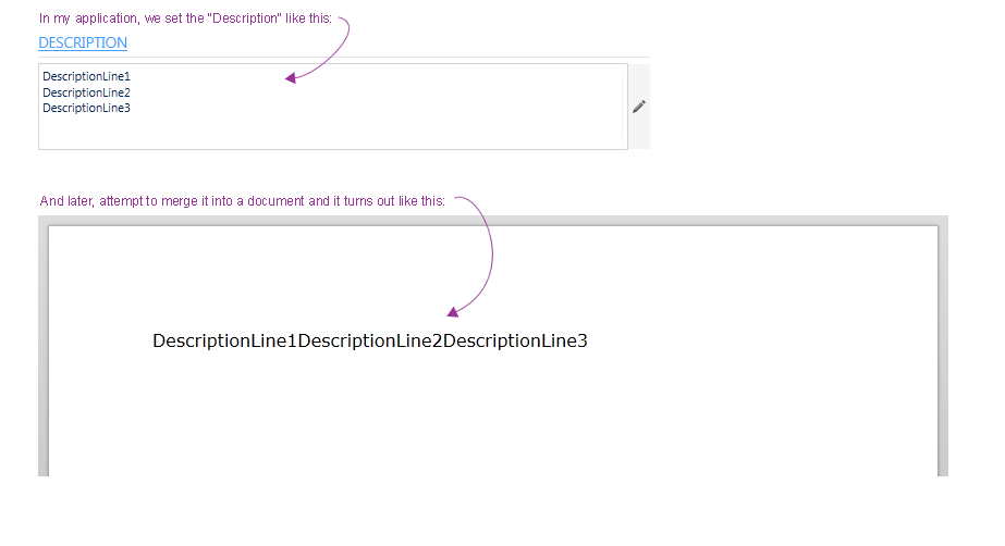 I'm using the merge fields in RichTextBox also, I try to merge data with \n, \n\r, CHR(13), CHR(10) and <br> but when I try merge the document is still merged in one line. What can I do to have a multiline merge field?