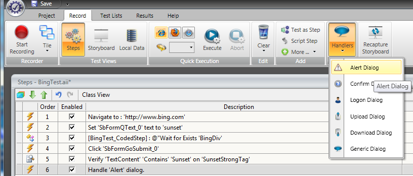 When I do recording, I have a regular alert message box with one ore 2 buttons, so when I click OK, this step doen'd want to record