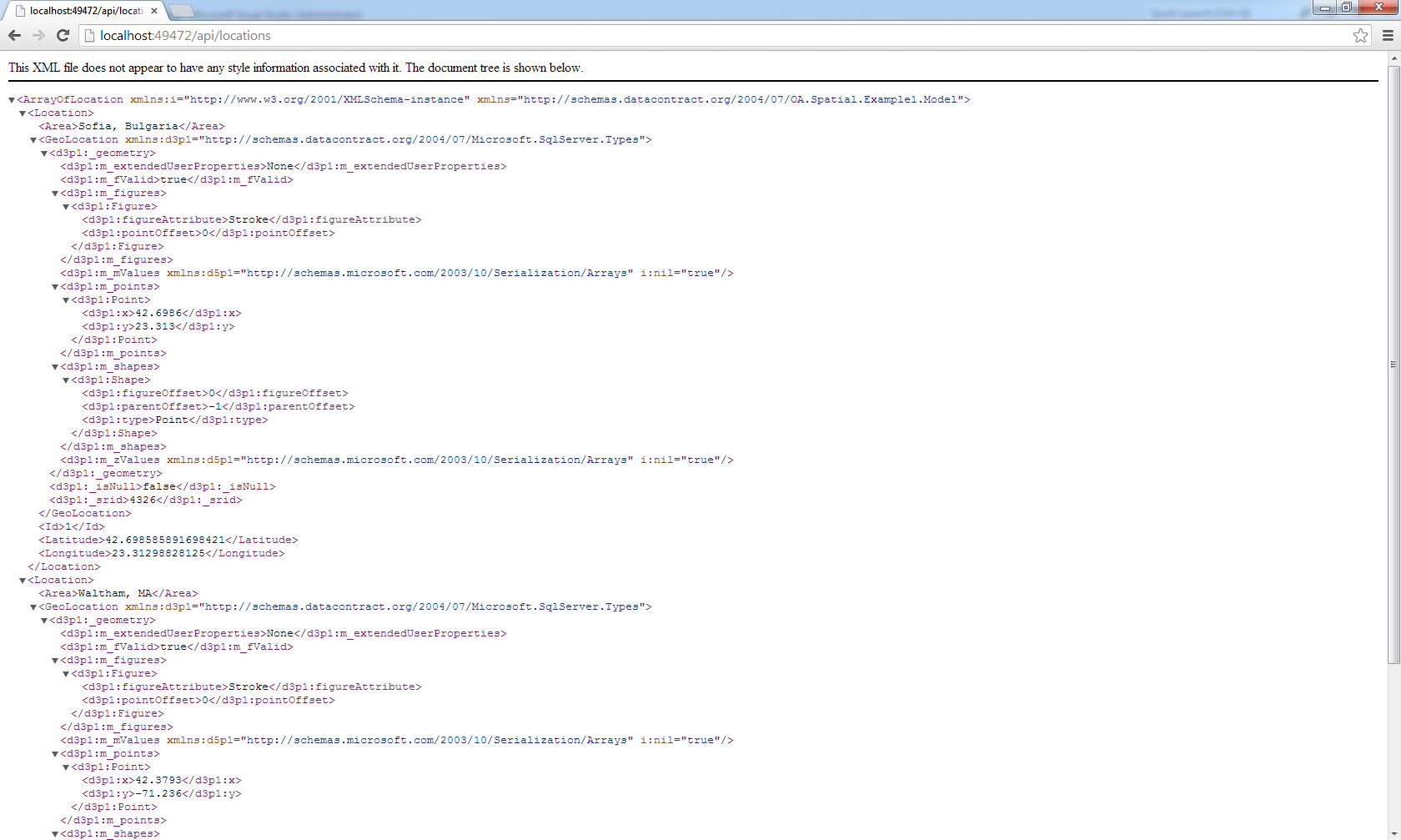 I have table with sqltype geography. and i create a web api service with openacess wizard from this table. but if i try to use web service application give me this error.