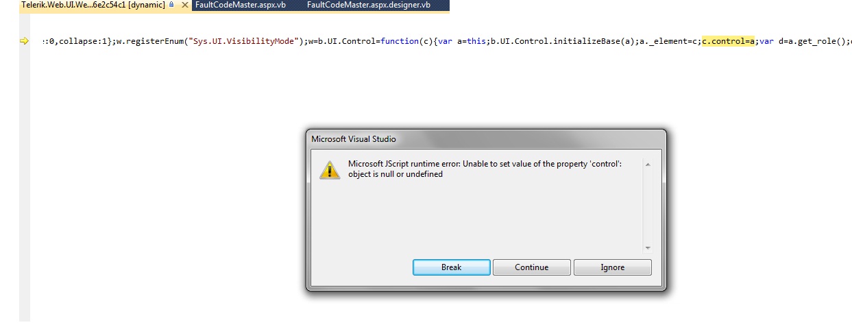 Microsoft JScript runtime error: Unable to set value of the property 'control': object is null or undefined