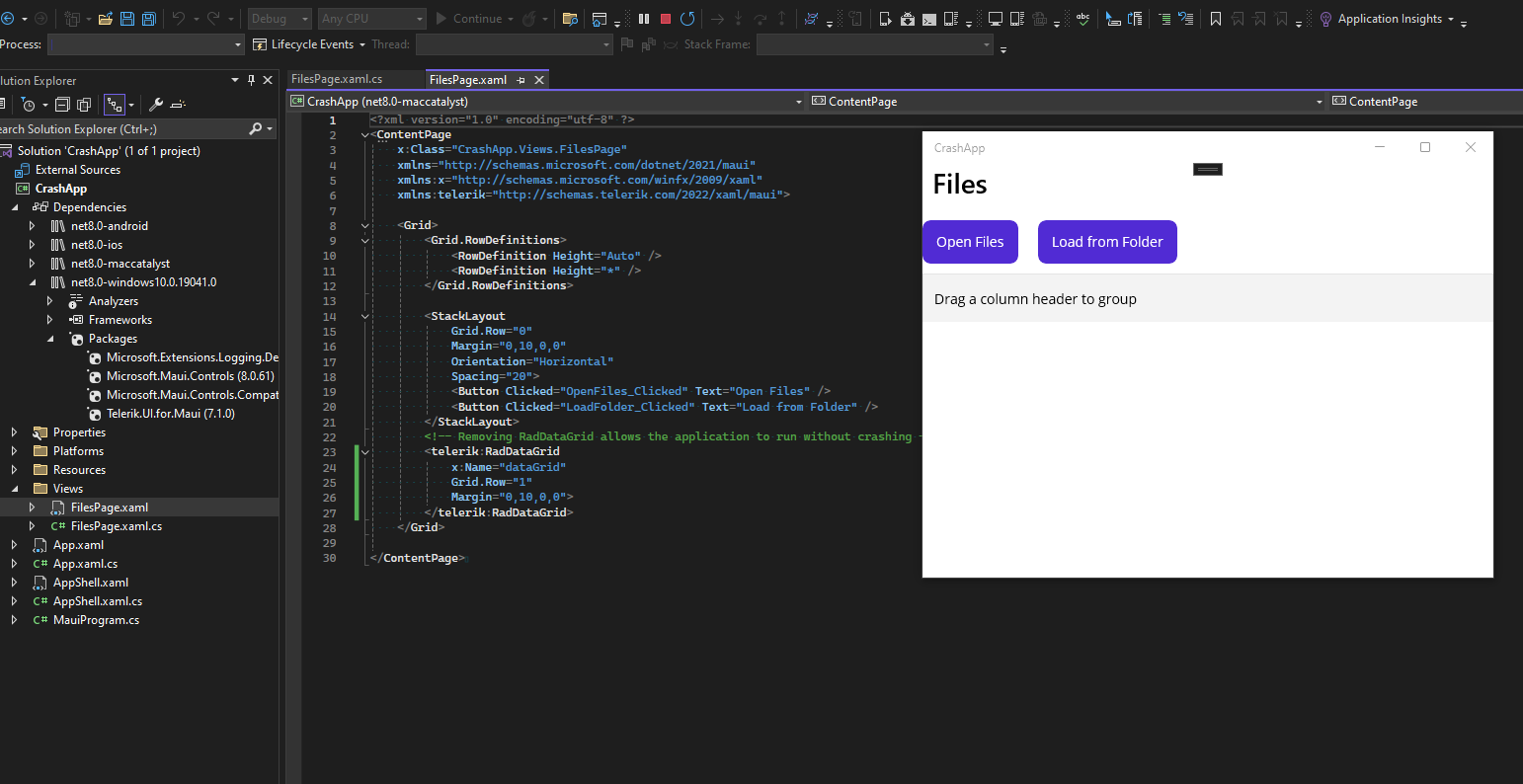 New .NET MAUI project. Added Telerik, added a DataGrid to XAML, I get the following when I try to run: