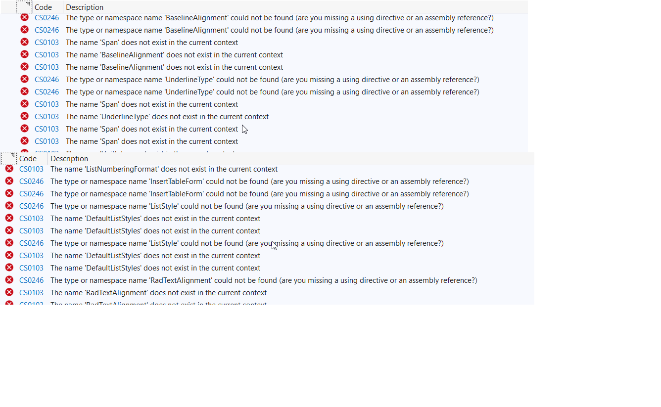 - 'RadRichTextEditor' does not contain a definition for 'DocumentView' and no accessible extension method 'DocumentView' accepting a first argument of type 'RadRichTextEditor' could be found (are you missing a using directive or an assembly reference?)