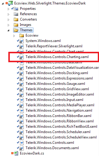 1. Create a new resource file in your theme project and give it a meaningful name (e.g. Telerik.Windows.Controls.Charting.Resources.xaml).