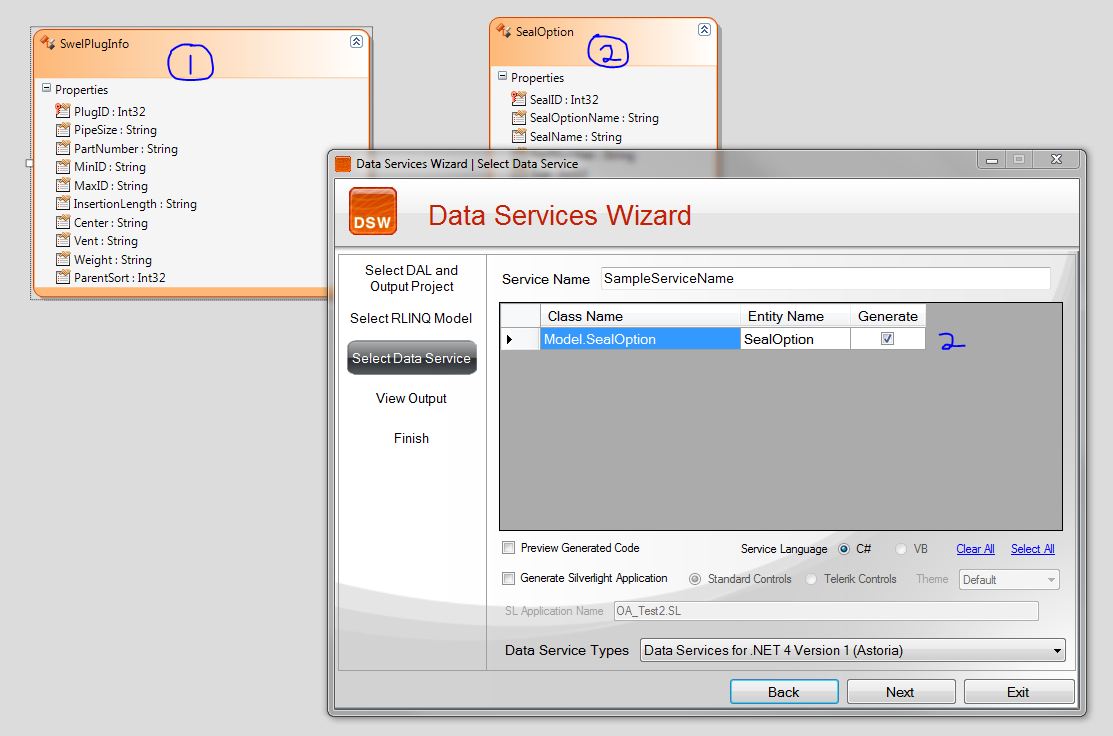 See attached. I'm not getting all of my objects when I run the Data Services Wizard. I don't see any difference between the two objects. What would cause an item to not be selectable?