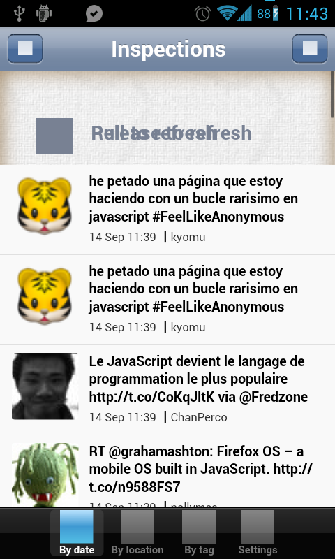 2) platform:"android". Same procedure and similar results in alle three cases. Icons loads fine, but disappear (blue squares) if a listview is scrolled,.