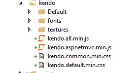 I have added local copies of css and js files of Kendo, and added the required fonts, Default and textures files. But still the icons are not showing up.