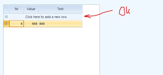 I have integrated GridView in my application. This grid ist bound to a bindingsource. When my query for the binding source has no datas, then I missing the "new row" line for adding datas. Please see the attached files.