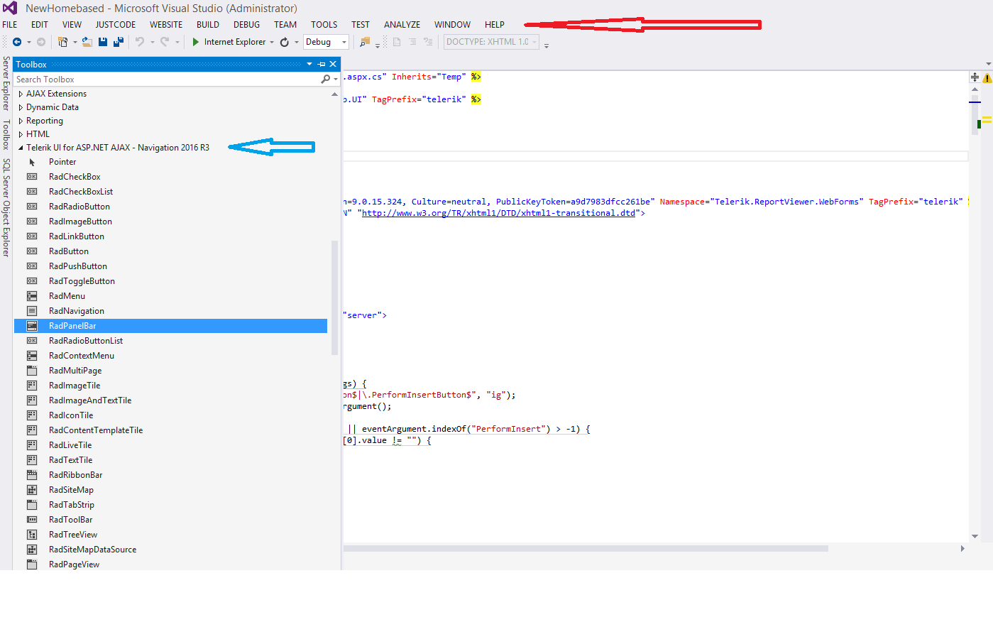 After downloading UI for ASP.Net Ajax R3 2016, Telerik Menu disappeared from VS 2013. Only JustCode is showing. Refer to attach.
