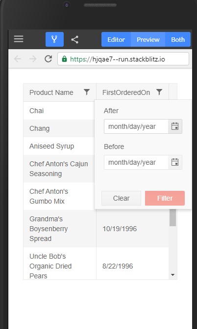 So, I've faced with issue in my project where a users can't select date on filter menu in grid component on mobile device.