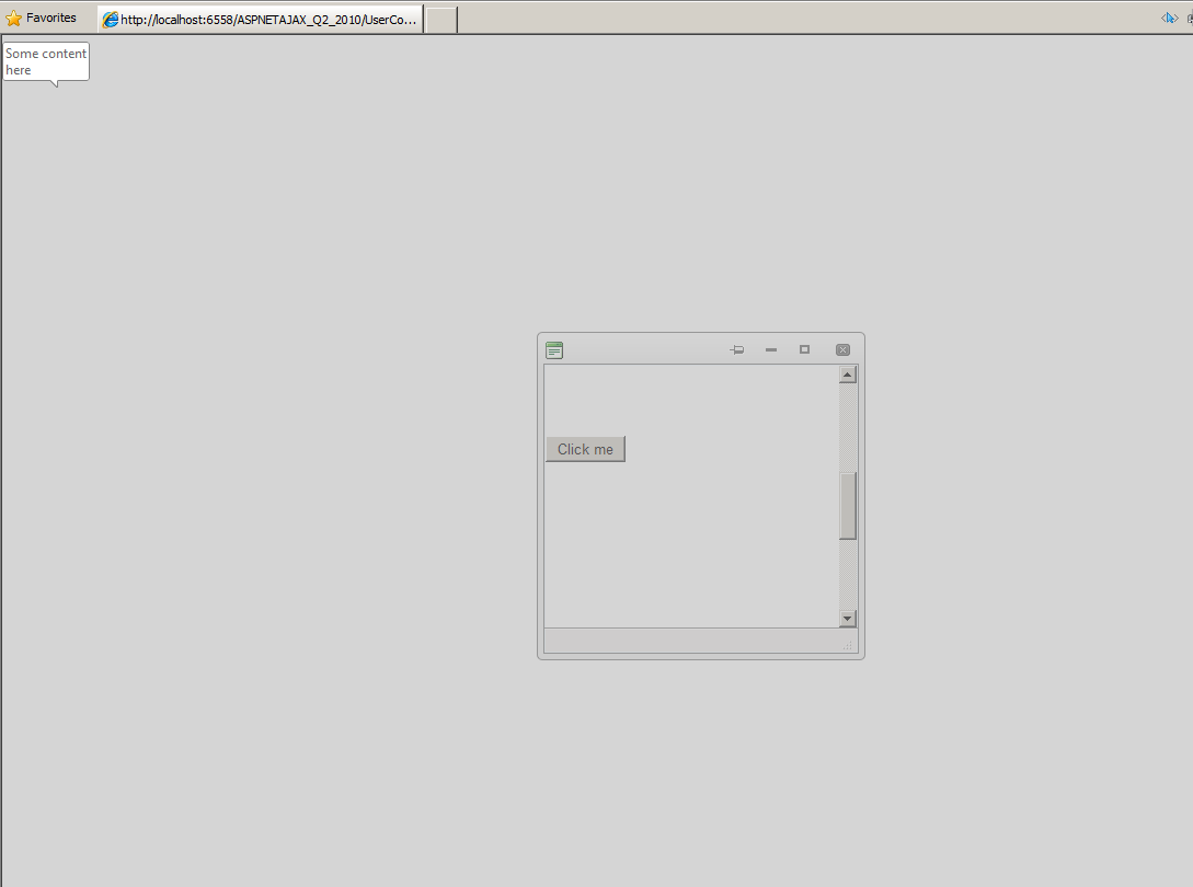 I have a radwindow which loads a user control containing a modal radtooltip. When the modaltooltip pops up it translates the overlay position and it's contents to the upper-left hand corner of the window. In other words, the tooltip overlay acts like the top left of the browser window is actually the top left of the radwindow.