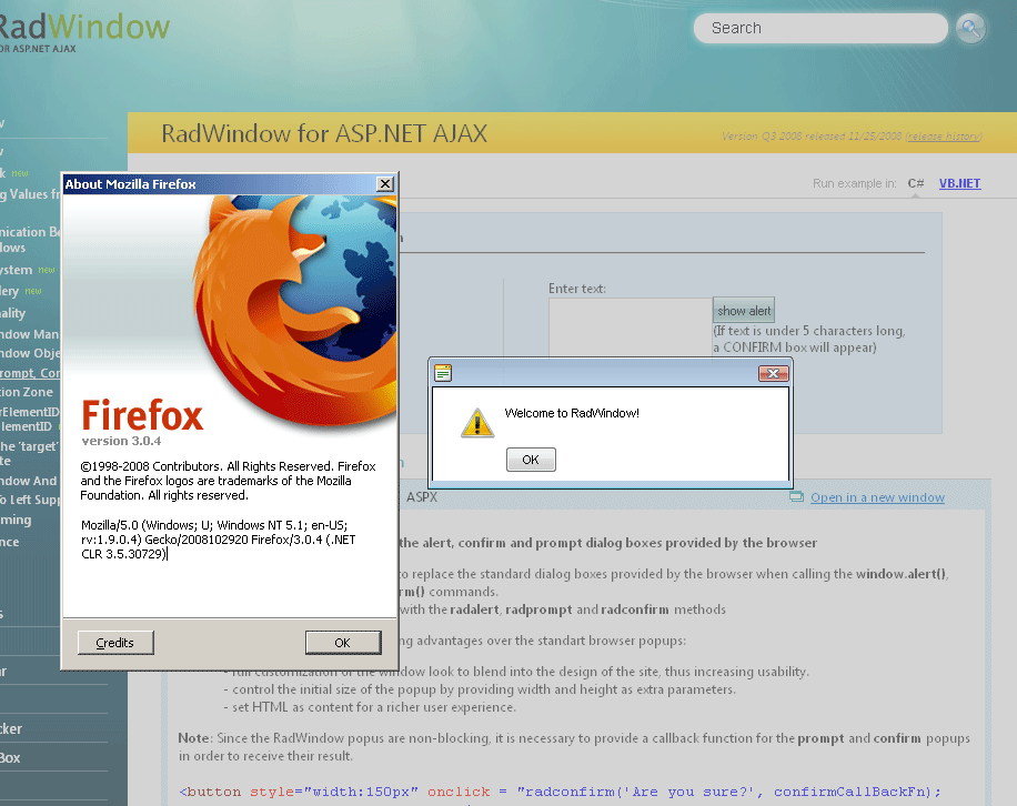I doubleckecked our online examples with Mozilla FireFox 3.0.4, but again, I was unable to reproduce the issue you have described - please, find attached a screenshot of how I see the modal windows of RadWindow.