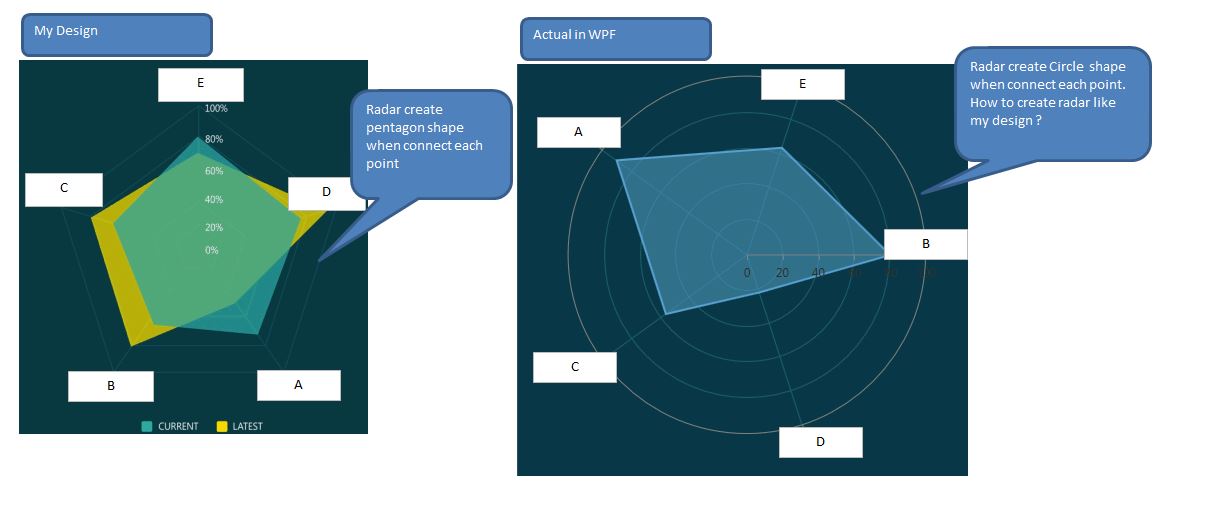 I have problem to change Radar chart properties to display like pentagonal, hexagonal or octagonal not circle (wpf default).