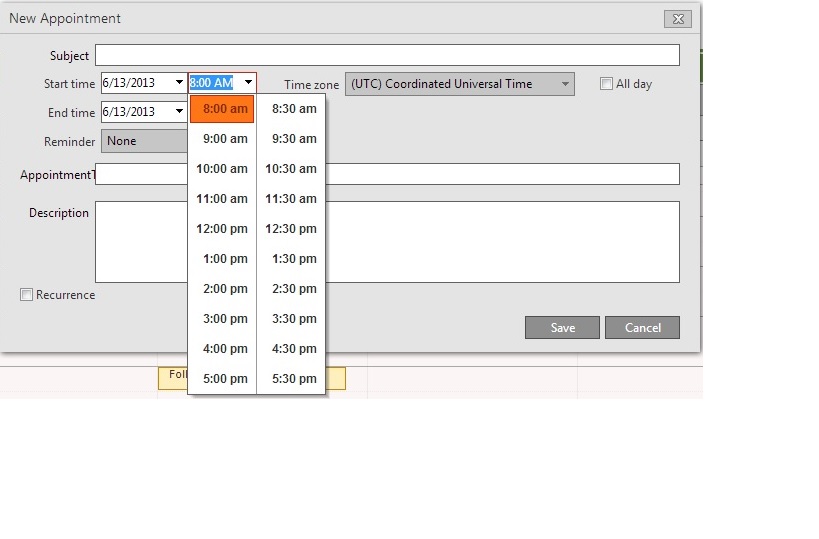 If you look at the attached image you will see the start and end time ranges are from 8:00 AM - 5:30 PM.