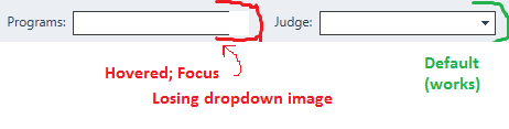 I am able to modify the background image of the combobox using this css (images attached). However, we loose the hover and focus image (see results.png for the focus problem.)
