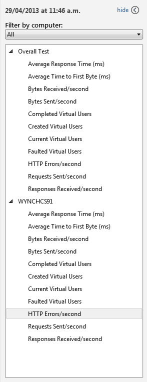 After the test is executed and the results are displayed in the Analyze window, the monitored machines are not displayed. Not only that but the agent (which is not set-up to be monitored) IS displayed (results.png).