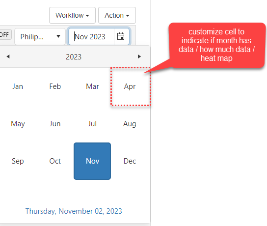 I want to visualize for the user if a particular month has data and am looking for a way to customize the content of the month cells.