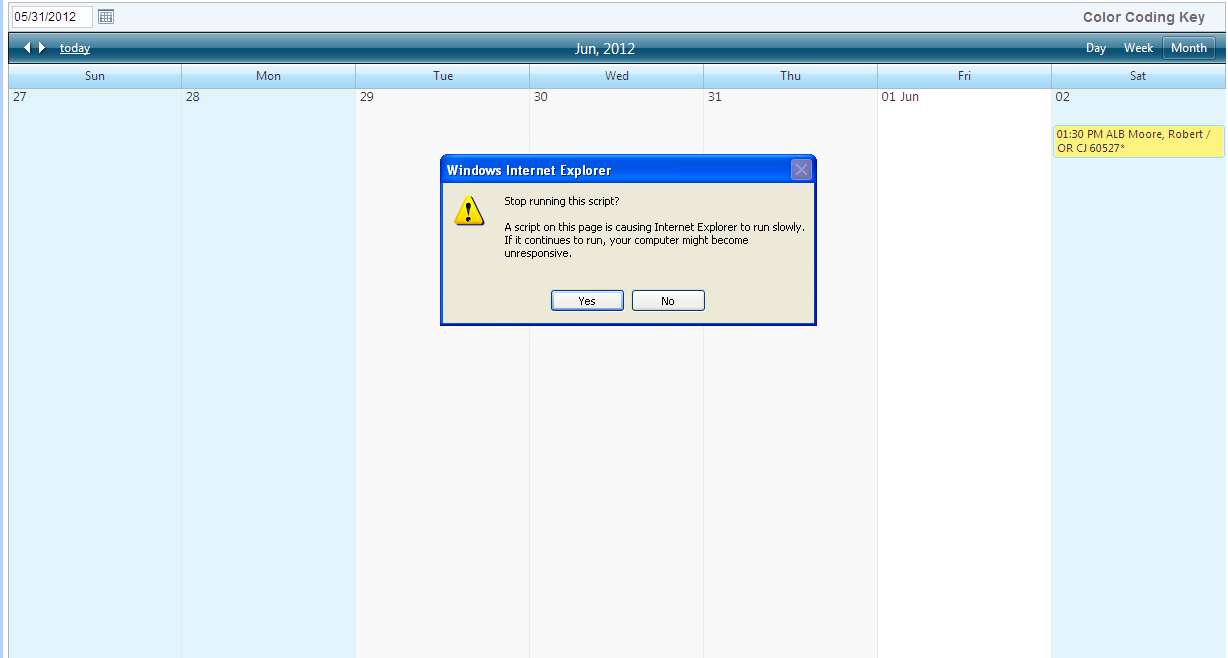 In my application I use the RadScheduler control work on MVC3, of course it is not support on MVC3 I must using Web service to bind data. And everything works fine in all browser. But when there are very much items display in the month view( total items close to 700 per month and I set VisibleAppointmentsPerDay="100" to show all of them). In the Firefox 13, IE9, Chrome it should take a froze page in 10s to 20s to loading and drawing all items and when I navigate to next month it takes time longer than that. Especially, in the IE7+ it show a froze page and after that throw an error: Stop running scripts?.