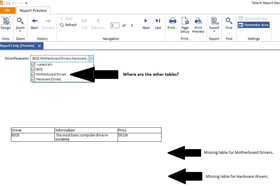 When I select all drivers, they should all be displayed on the report.