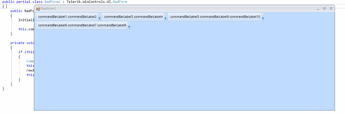 I am using the RadCommandBar, and for the strip elements I have the overflow visibility set to collapse, as I don't want the user to turn the command items off or hide them. When I resize, the Controls in the strip elements disappear and only a reduced-sized footprint of the right-most strip elements appear (see attached), with no ability to select the control contained within.