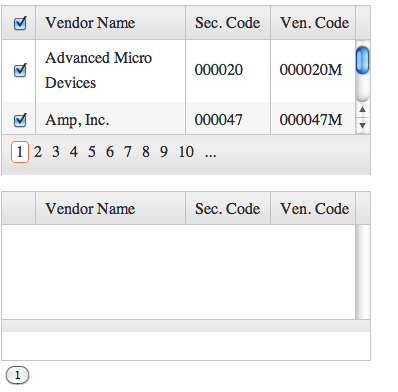3)if user has selected one row in first page and he moves to second page and there he selected another row and click the button those two rows has to move to another grid.