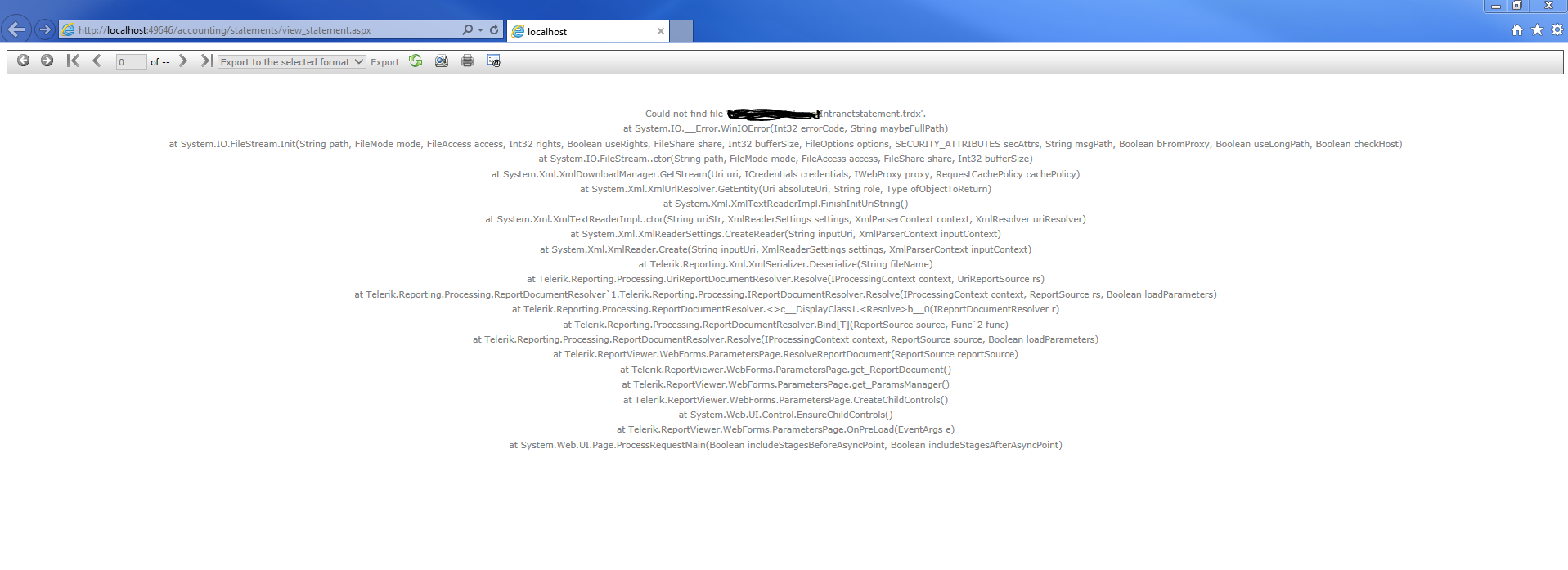 The statement.trdx is in the same directory as my view_statement.aspx page that is trying to render it within the rptstatement viewer.