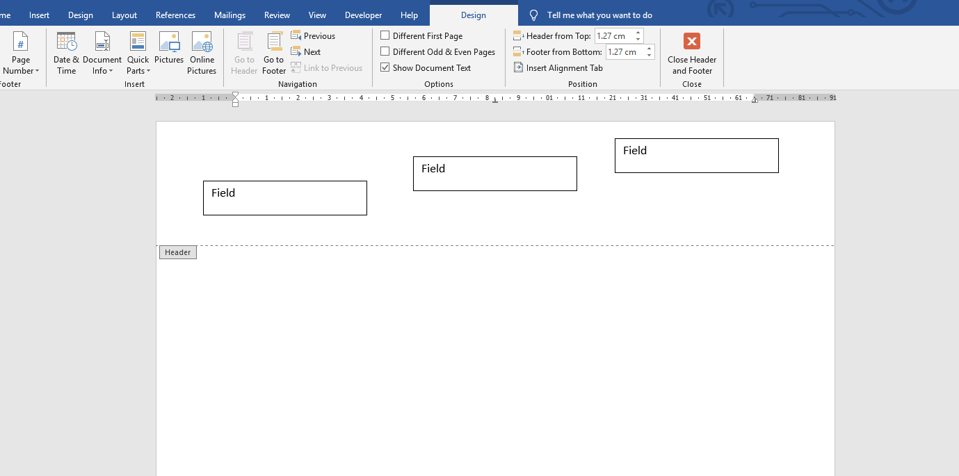I want to put some text in the header of my document in an irregular manner, which seems to be done only through the textbox.