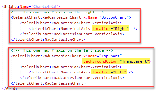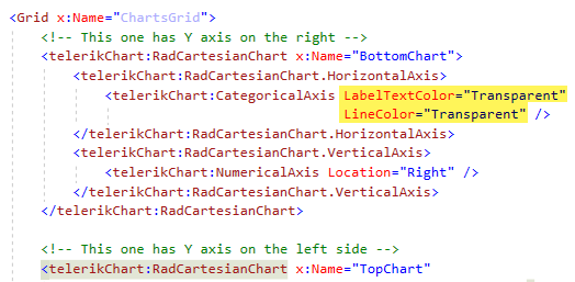 <telerikChart:RadCartesianChart x:Name="multiAxesGraph" Grid.Row="1" BackgroundColor="{OnPlatform iOS=Transparent}" HorizontalOptions="FillAndExpand" Zoom="1,1"> <telerikChart:RadCartesianChart.HorizontalAxis> <telerikChart:DateTimeContinuousAxis LabelFitMode="Rotate" LabelFontSize="9" LabelFormat="MM/d" LabelTextColor="White" LineColor="White" MajorStep="7" MajorStepUnit="Day" MajorTickThickness="5" PlotMode="OnTicks" /> </telerikChart:RadCartesianChart.HorizontalAxis> <telerikChart:RadCartesianChart.VerticalAxis> <telerikChart:NumericalAxis LabelFontSize="9" LabelTextColor="White" LineColor="White" MajorStep="5" Maximum="{Binding MaxWeight, Mode=TwoWay}" Minimum="{Binding MinWeight, Mode=TwoWay}" /> </telerikChart:RadCartesianChart.VerticalAxis> <telerikChart:RadCartesianChart.Series> <telerikChart:LineSeries CategoryBinding="Category" DisplayName="Weight" ItemsSource="{Binding WeightGraph, Mode=TwoWay}" ValueBinding="Value" /> <telerikChart:BarSeries CategoryBinding="Category" DisplayName="Water" ItemsSource="{Binding WaterGraph, Mode=TwoWay}" ValueBinding="Value" /> </telerikChart:RadCartesianChart.Series> <telerikChart:RadCartesianChart.Palette> <telerikChart:ChartPalette> <telerikChart:ChartPalette.Entries> <telerikChart:PaletteEntry FillColor="White" StrokeColor="White" /> <telerikChart:PaletteEntry FillColor="#8cc63f" StrokeColor="#8cc63f" /> </telerikChart:ChartPalette.Entries> </telerikChart:ChartPalette> </telerikChart:RadCartesianChart.Palette> <telerikChart:RadCartesianChart.ChartBehaviors> <telerikChart:ChartPanAndZoomBehavior HandleDoubleTap="True" PanMode="Horizontal" ZoomMode="Horizontal" /> </telerikChart:RadCartesianChart.ChartBehaviors> </telerikChart:RadCartesianChart>protected override void OnElementChanged(ElementChangedEventArgs<RadCartesianChart> e){ base.OnElementChanged(e); var series = Control.Series.ToArray(); if (series.Length == 2) { TKChartNumericAxis nativeAxis = series[1].YAxis as TKChartNumericAxis; nativeAxis.Position = TKChartAxisPosition.Right; nativeAxis.Style.LabelStyle.TextColor = UIColor.Green; nativeAxis.Style.LineHidden = false; nativeAxis.Style.LineStroke = new TKStroke(UIColor.White); series[1].YAxis = nativeAxis; } }I'm stuck here for 2 days creating custom renderer for iOS but none of them succeed.