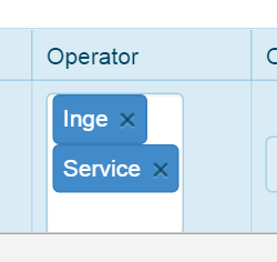 in the column I have filterable: {multi: true, dataSource: Witness ,search: true } that brings up a list of names but I can't find a way to make the operator change from eq to contains