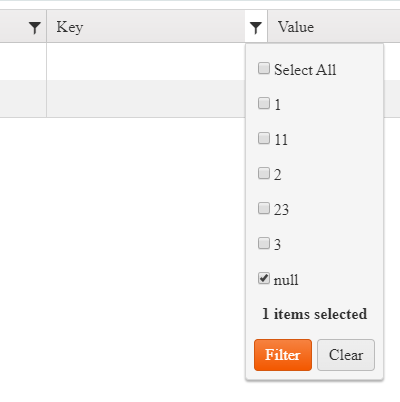 In my grid there are cells where we can accept having null values, e.g. property can exist without owner. I would like to filter owner column in multifilter by having null. Right now, empty (null) values are not visible in multi filter menu, only existing owners are displayed. We hacked the problem by switching from null values to empty strings "", and they are visible in menu. But I'm feeling extremely awful for doing such hacks in my code.