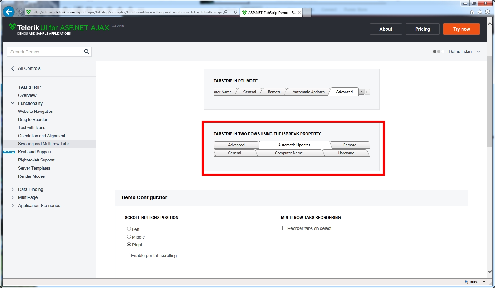 http://demos.telerik.com/aspnet-ajax/tabstrip/examples/functionality/scrolling-and-multi-row-tabs/defaultcs.aspx?skin=Default