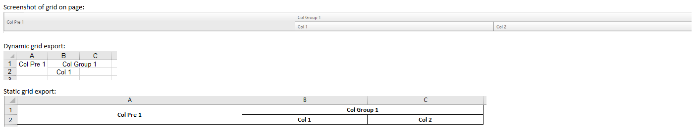 I'm running into an issue while exporting in BIFF format, the column headers aren't correct on any of my grids that use multicolumn headers. This is on dynamically created columns and multicolumn headers. Anything that does not use multicolumn headers is good.