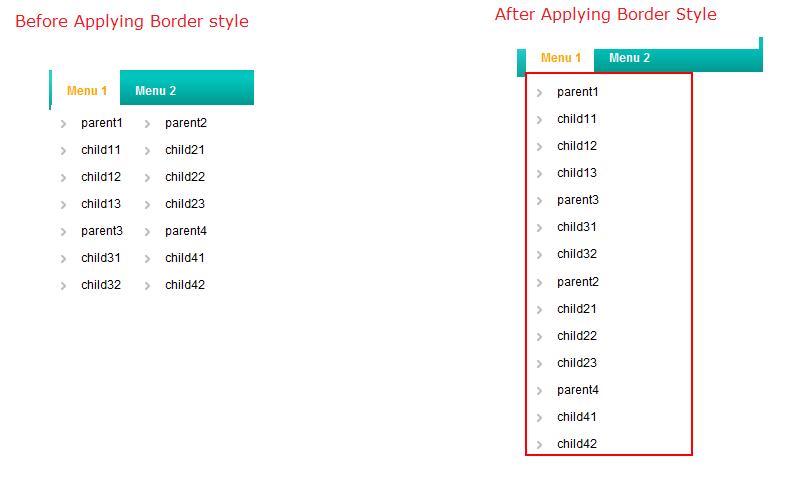 I think I cannot apply border style to the Submenu directly. Is there any Workaround to achieve this.