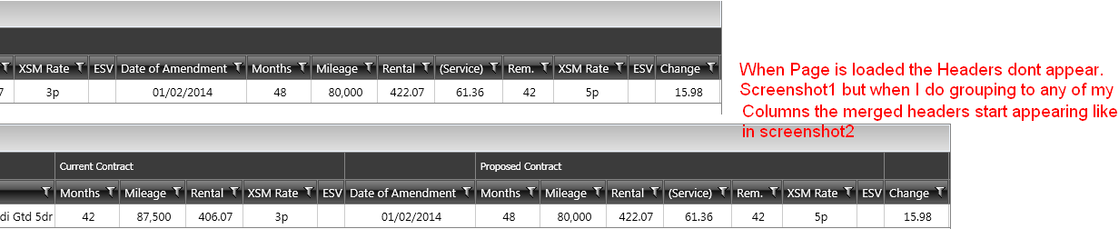 - My merged column headers dont appear at first go. Pls see issue1 screenshot